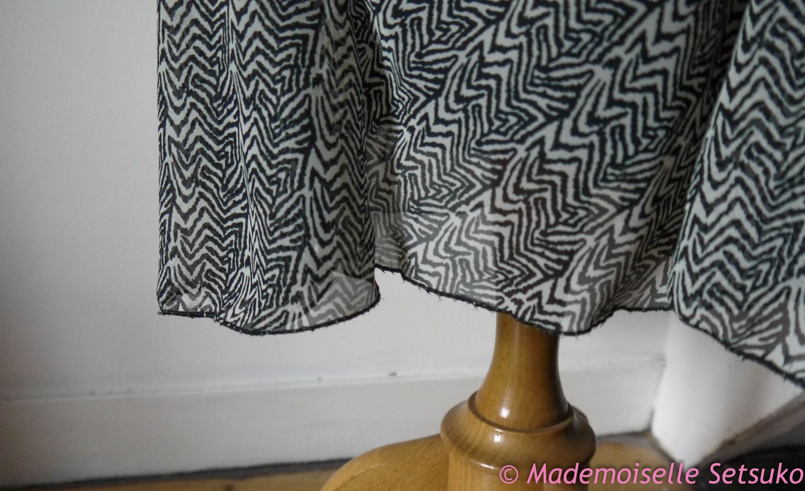 Du voile, de l'ourlet roulotté, de la ceinture élastiquée sans fronces, des godets (sans couture verticale, oh yeah !).
