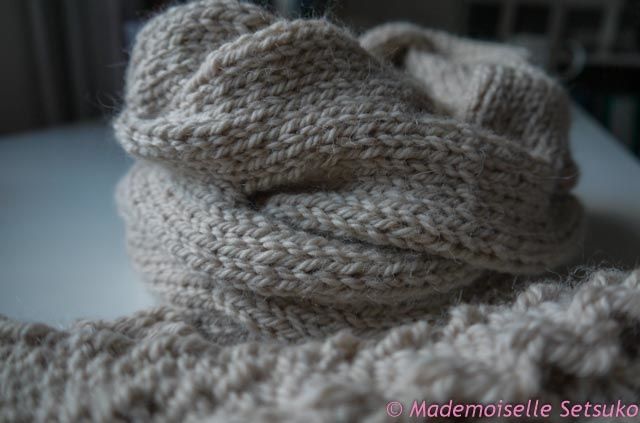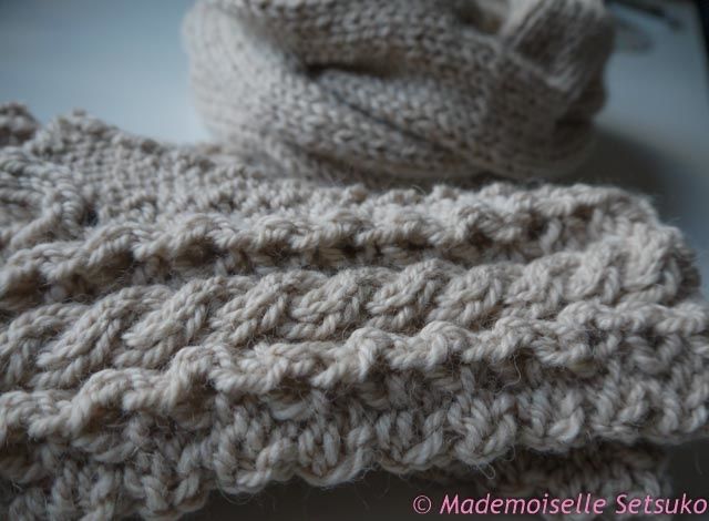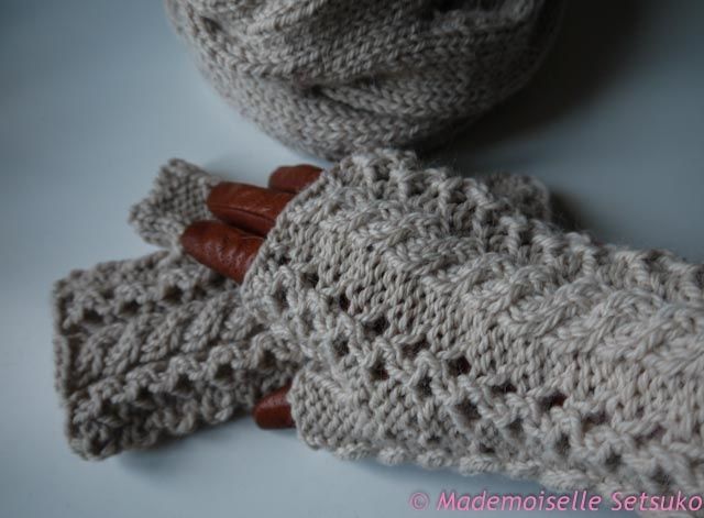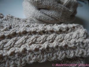 Les mitaines viennent du Rowan Winter warmers, le snood est le Burberry Inspired Cowl Neck Scarf.