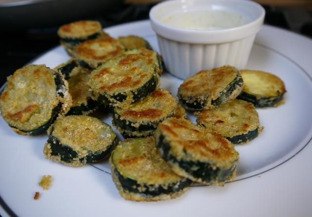Ah....les courgettes.... : cuites seulement 3 mn en tranches de 5mm, passées dans la farine, puis l'oeuf battu et enfin la panure, et faire revenir à la poële. Enjoy !!