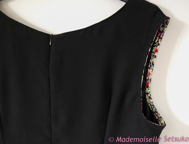La doublure a été prise dans la fermeture éclair et les emmenchures ont été finies avec un biais Liberty contrasté et coloré.