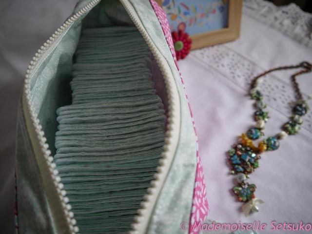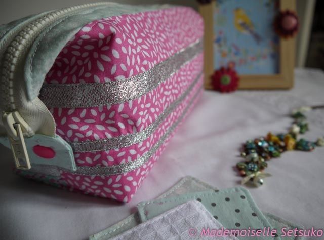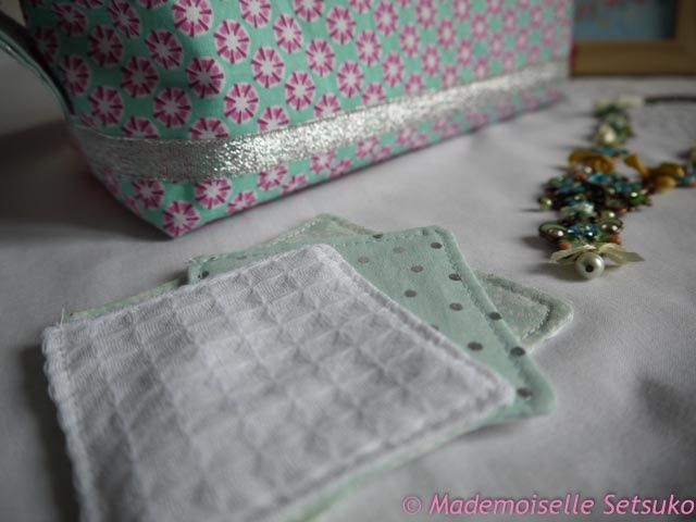 Le patron est très largement inspiré de celui-ci, tissus imprimés et nid d'abeilles Mondial Tissu, lingettes démaquillantes en 2 tailles (8 et 10cm).